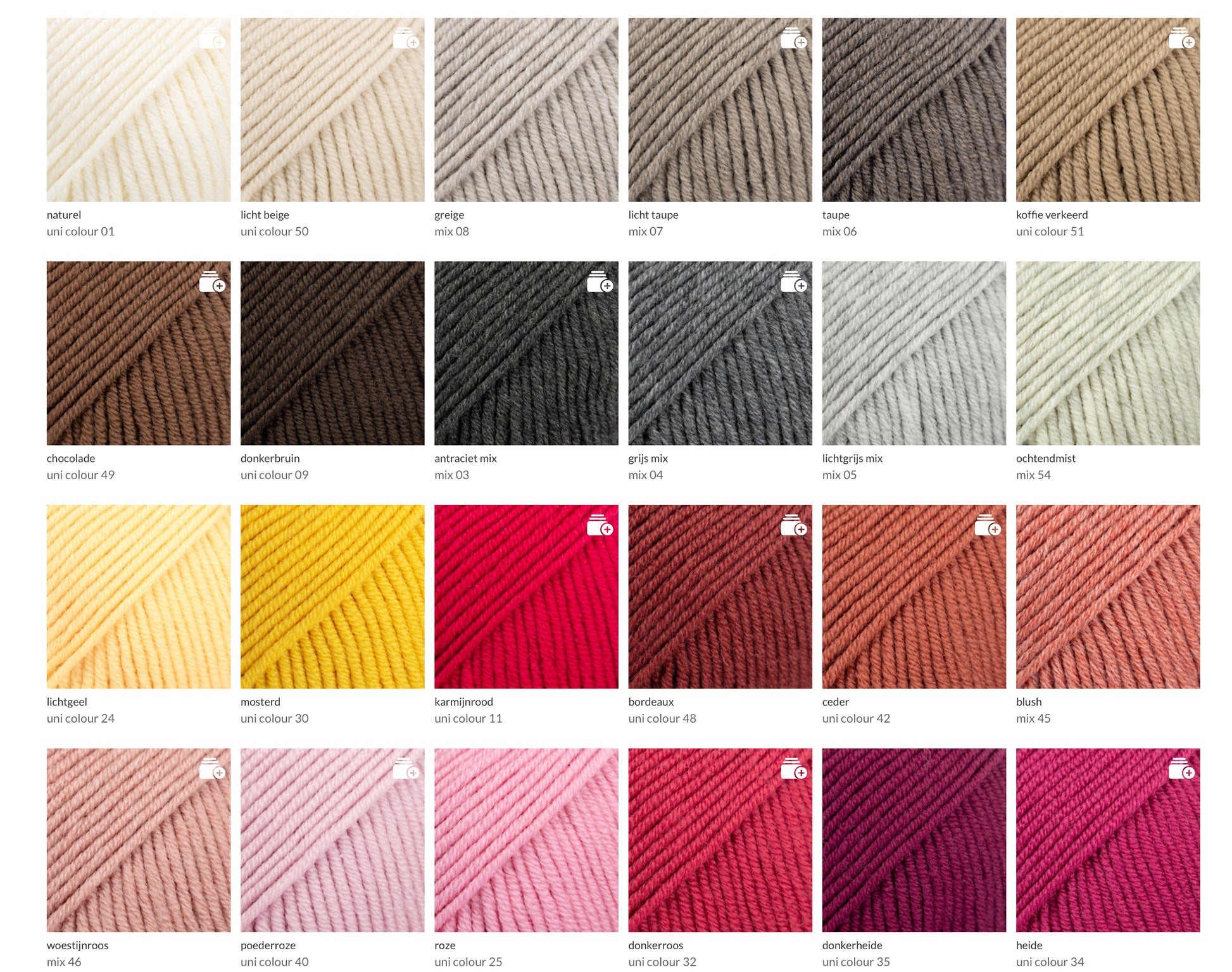 We gebruiken een fijne 100 % merinowol, die in 48 kleuren bestaat, dus kiezen maar!